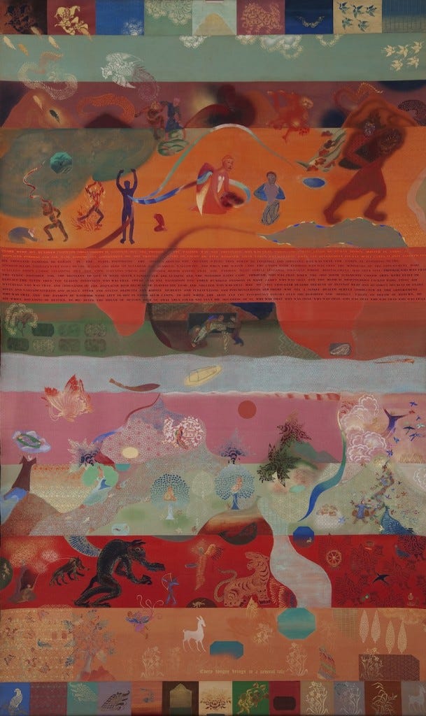 I’m not even sure how I ended up there, Alice-like on a Tuesday night. I went looking for art — to try to jumpstart my heart. Douse it in the open veined visions of imaginations birthed from experiences far afield from my own. Less chronological. More mythological. Fewer rocks. More waves. Only by jumbling our sense of reality can we grow our heart to contain other experiences.
